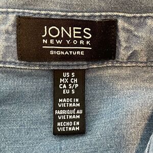 Jones New York Chambray Button Down Shirt Blue Cotton Knit Long Sleeve S