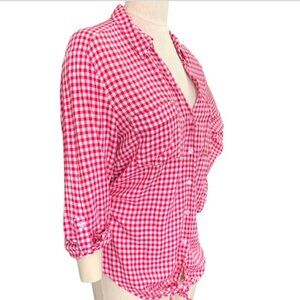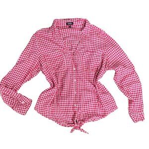 Jones New York Checked Button Up Tie Waist Top XL Red 127C
