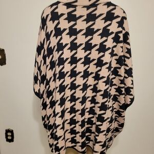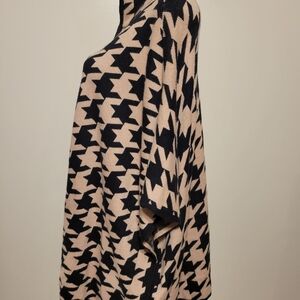 Stylish poncho with a bold black and tan houndstooth pattern. Perfect for layering.