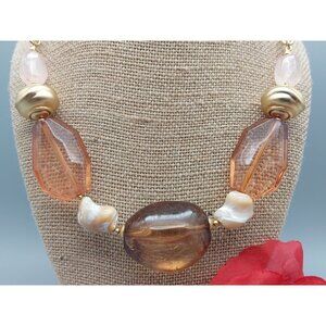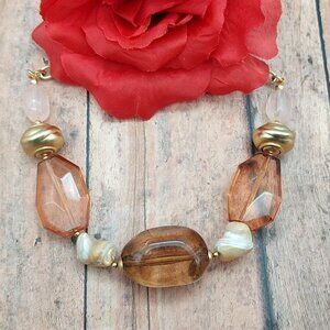 Jones New York Chunky Statement Collar Necklace Neutral Colors Shell Toggle MINT