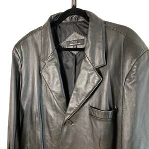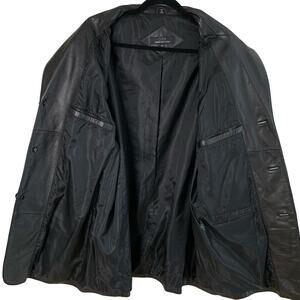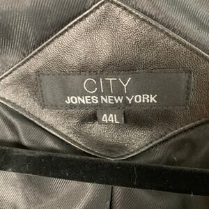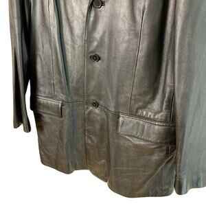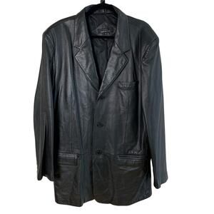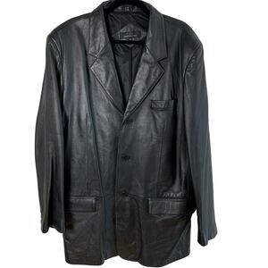 Jones New York City Mens 44L Black Leather Blazer Jacket 3-Button Classic Pocket