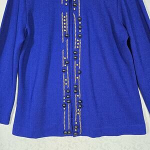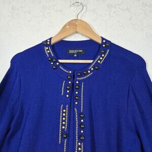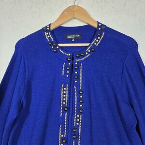 Jones New York Collection Beaded Knit Cardigan sz M Blue Long Sleeve