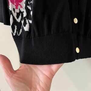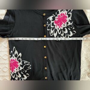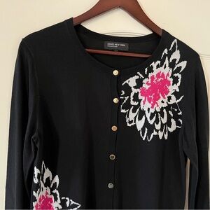 EUC excellent condition & quality! Like new! Gorgeous black cotton & spandex long sleeve sweater by Jones New York Collection. Beautiful pink & white floral pattern. Button down, gold. Measurements in photos. Women’s size Large. Smoke free home