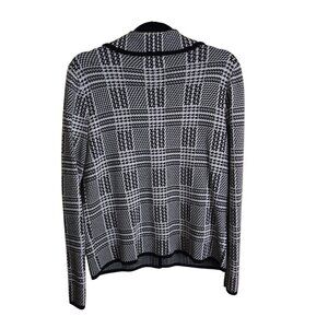Jones New York Collection Black White Plaid Cotton Blend Sweater Blazer Size L