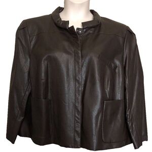 Jones New York Collection Brown Walnut Cropped Faux-Leather Jacket Plus Size 22W