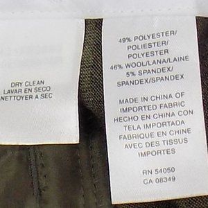 Jones New York Easycare Stretch Pinstripe Pants Size 16 Classic Fit - Sits at waist - Straight leg - Relaxed through thigh BRAND NEW WITH TAGS! No side pockets Back pockets with button closure 49% Polyester, 46% Wool, 5% Spandex 1733