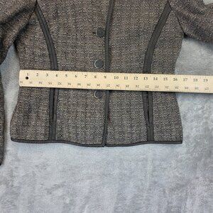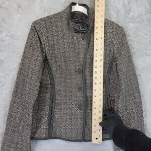 Jones New York Collection Jacket Womens 4 Brown Tweed Wool Blend Leather Trim