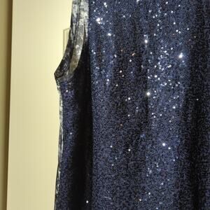 Jones New York Collection Navy Sequin Snakeskin Print Trim & Back Tank Size 14