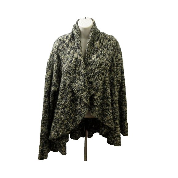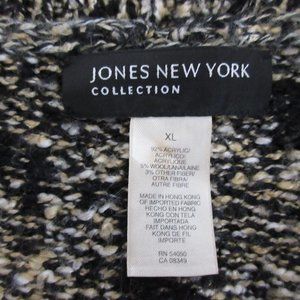Jones New York Collection Open Cardigan Sweater Sz XL Black Textured Curved Hem