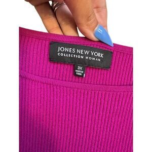 Jones New York Collection Woman 3X Fuchsia Ribbed Knit Short Sleeve Top Blouse