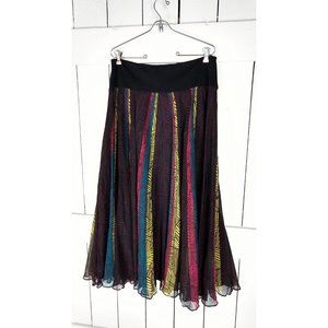 Jones New York Collection sheer silk flowy maxi skirt/silk tribal striped skirt/large