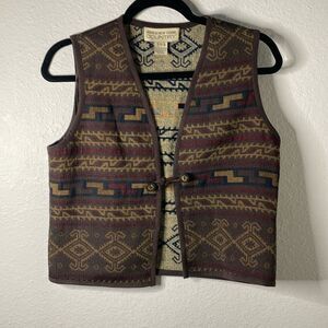 Jones New York Country Aztec Southwestern Vest Brown Size Small Wool Blend