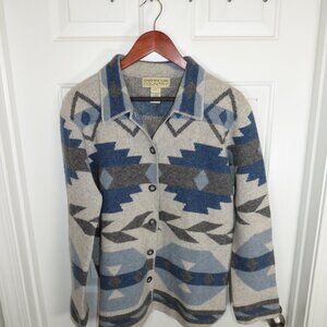 Jones New York Country Cardigan Sweater Southwestern Aztec Lambswool Small