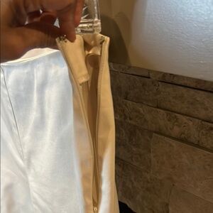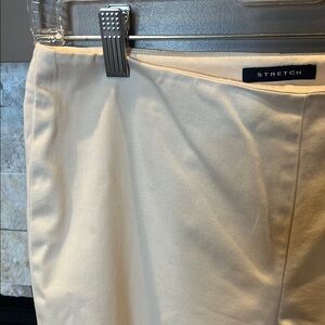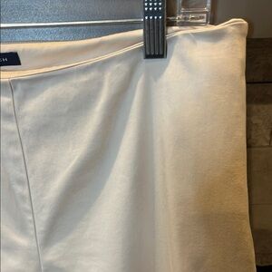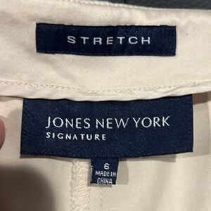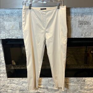 Jones New York signature beige ankle pants featuring eyelet detail at the ankles. Neutral pair that would match with any top. Perfect for a summer lunch date. Side zipper