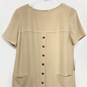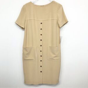 Jones New York Creamy Tan 100% Silk Minimalist Neutral Shift Dress NEW