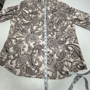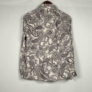 Jones New York Dark Brown and White Paisley Women’s Shirt with Striped Cuffs