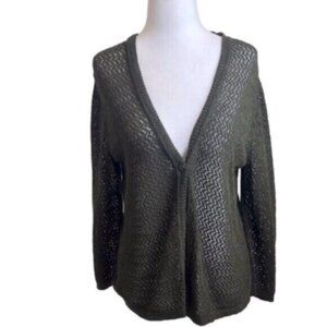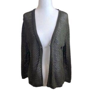 Jones New York Dark Green Open Knit Cardigan Business Casual Sweater Large