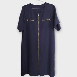 Jones New York Dress Sz 12 Zip Front Navy Short Sleeves Sheath Knee Length Work