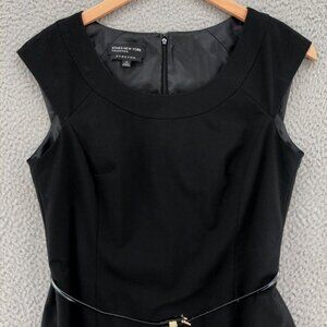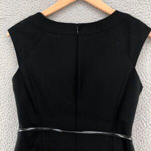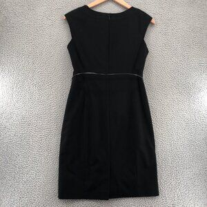 Jones New York Dress Womens 10 Black Knee Sheath Sleeveless Stretch Belt Career*