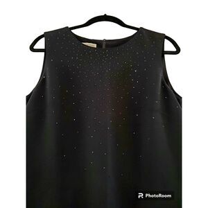 Jones New York Dress Women's 12 Black Sheath Cocktail Rhinestones Slit Lined