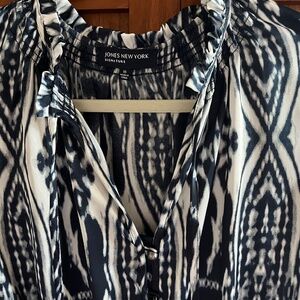 Navy and white Irate print dress size10. Elasticized waist, hits at or above knee. Polyester-never wrinkles!