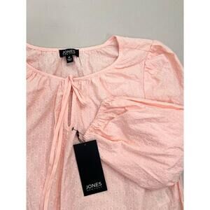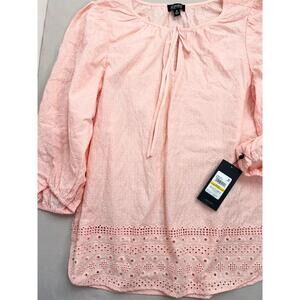 Jones New York Embroidered 3/4Sleeve Tie Front Blouse Size M in Rose Sand
