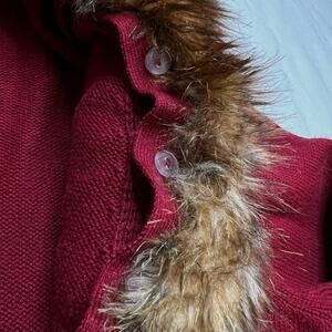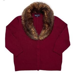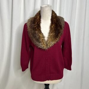 Jones New York Faux Fur Collar Cardigan Sweater Knit Red Women's PL Euro Y2K