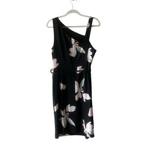 Jones New York Floral Asymmetrical Sleeveless Belted Mid Calf Dress Black 14