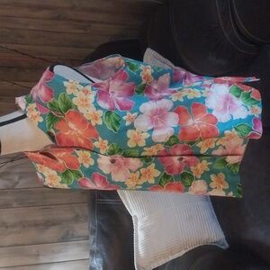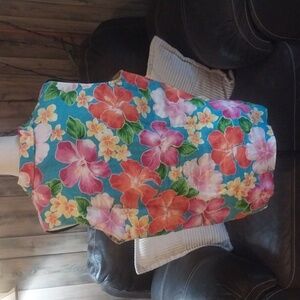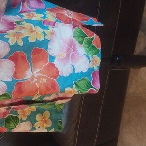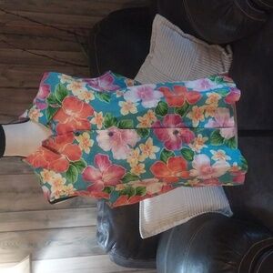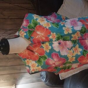 Jones New York Floral Summer Linen Button Up Top Size 12 Vacation Beach Resortwear Tropical Floral Colorful Preowned