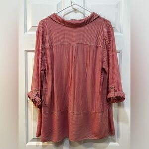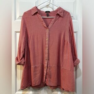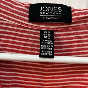 Jones New York Flowy Tunic Blouse Sz 1X Collared Roll Tab Sleeve Coastal Mature