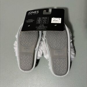 Jones New York Fuzzy Slippers House Shoes Women's Crossover Strap 5-6 Gray Small