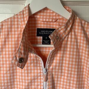 Jones New York Gingham Peach Zip Front Windbreaker Cottagecore Rain Jacket Sz S