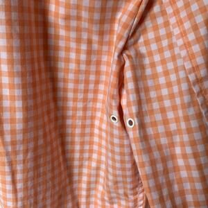 JONES NEW YORK SIGNATURE Women’s Zippered Windbreaker/Rain Jacket is so cute! An Orange gingham pattern is all about warmer weather. This coat has two front side slit pockets, a button collar and cuffs and vented arm pits. Excellent condition!