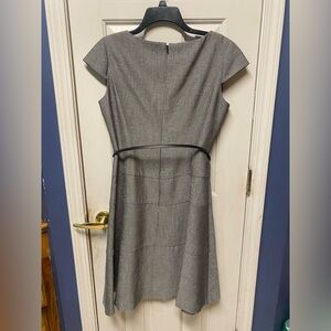 Jones New York Gray Sheath Dress Belted 10 Office Church Cap Sleeves