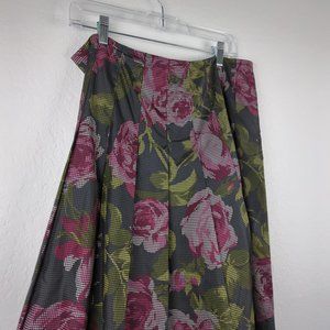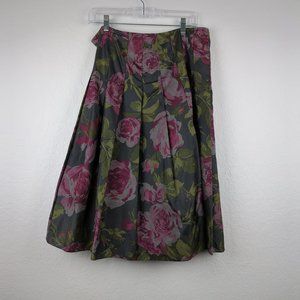 Jones New York Gray and Pink Floral A-Line Skirt