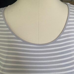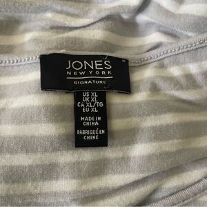 Jones New York Gray/White Striped Short Sleeve Viscose Hi-Lo Tee Top Women's XL