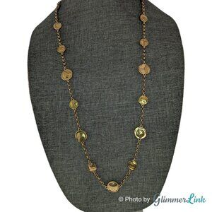 Jones New York gold tone coin station chain necklace. The hammered disks are of various sizes.