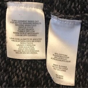 This Jones New York Hombre Style Dble Breasted Mixed Knit Style Cardigan Sweater Sz L is in excellent condition. Stretchy. Big Buttons. See measurements below.