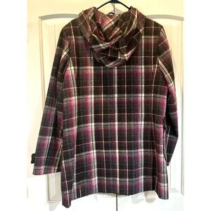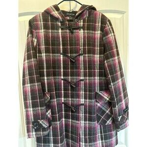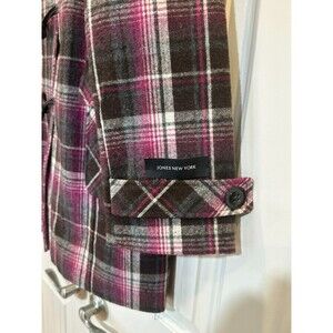 Jones New York Hooded Pea Coat Zip Up Button Up Plaid Wool Coat Women's Size 14
