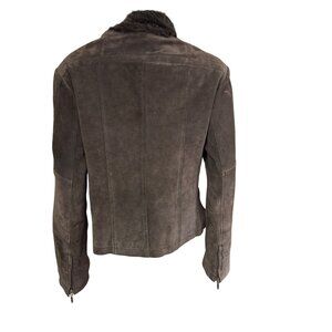 Jones New York Jacket Womens L Brown Suede Leather Removable Rabbit Fur Scarf