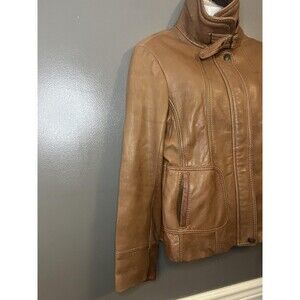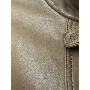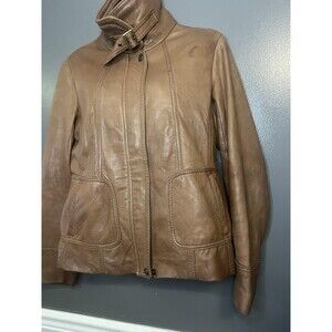 Jones New York Jacket Womens Large Brown Leather Moto Belt Collar Pockets Zip