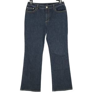 Jones New York Jeans Womens 8 Bootcut Flare Blue Stretch Denim Gold Beads