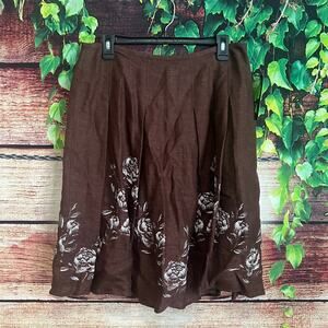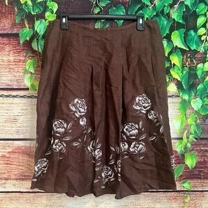Jones New York Knee Length Skirt 10P Petite LINEN Blend Brown Pleated Floral NWT