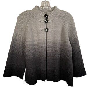Jones New York Knit Cardigan PM Grey Black Ombre Sweater 100% Cotton Office Work