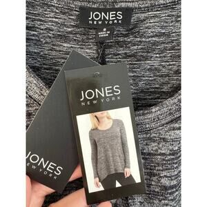 New with tags, long sleeve knit sweater by Jones New York in size small. Dark gray and black melange color.