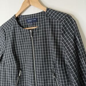Jones New York Lady Jacket Size S Full Zip Collarless Plaid Windowpane Preppy
