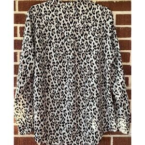 Jones New York Leopard Print Lightweight Long Sleeve Blouse Size XL