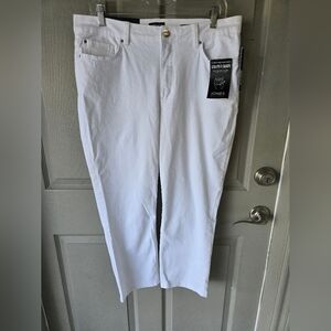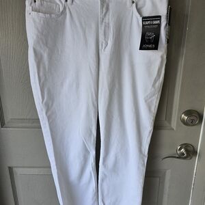 Stylish white jeans with a sculpted shape design. Perfect for any occasion.Elevate your wardrobe with the Jones New York Lexington Capri Jeans, tailored for a comfortable yet stylish fit. Designed for women who appreciate a blend of classic elegance and contemporary flair, these jeans come in a crisp white, versatile enough to pair with any top for a variety of looks.