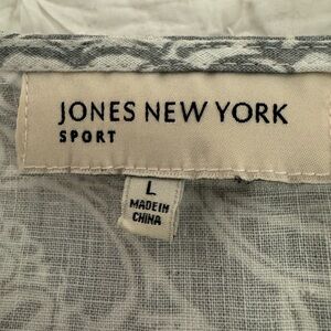 Jones New York Linen Blouse with Crochet Detailing. Gray/white Size Large