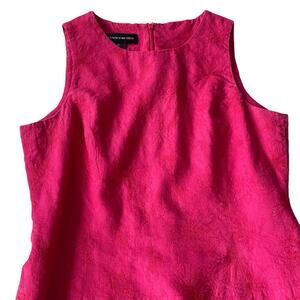 Jones New York Linen Dress Floral Embroidered Boho A Line Bright Pink 12 GUC